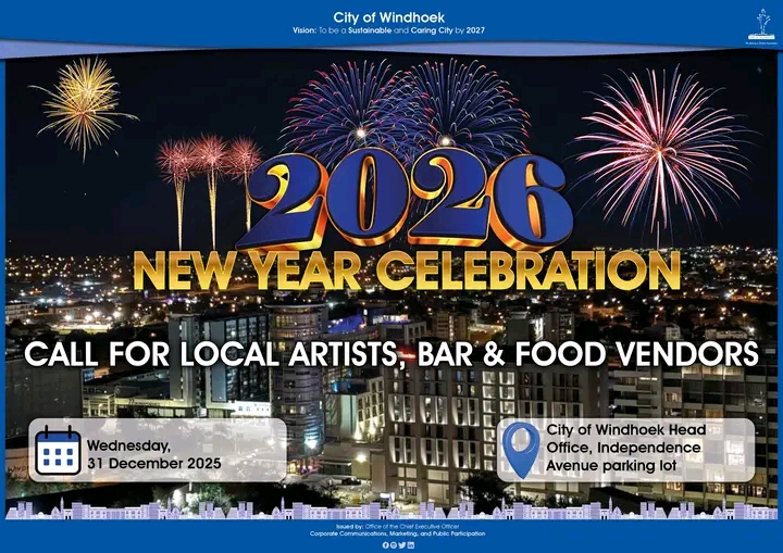 City of Windhoek Opens Applications for Vendors and Performers for New Year’s Celebration. The City of Windhoek has opened applications for food and beverage vendors, as well as performing artists, to participate in its upcoming New Year’s celebration. Interested applicants have until 29 November 2025 to submit their forms.