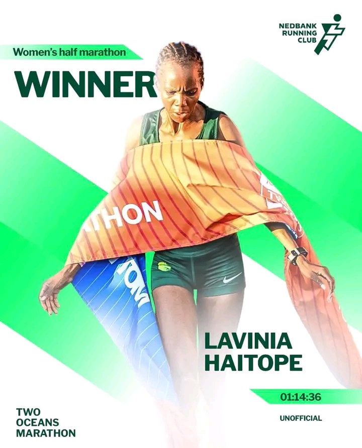 Lavinia Haitope Triumphs at Two Oceans Marathon. Nedbank Namibia has proudly congratulated Lavinia Haitope, a runner from the Nedbank Running Club, for her spectacular victory in the Two Oceans Marathon Women’s Half Marathon. Haitope’s performance stood out as a display of strength, dedication, and elite athletic ability, earning her recognition on one of the most competitive stages in long-distance running.