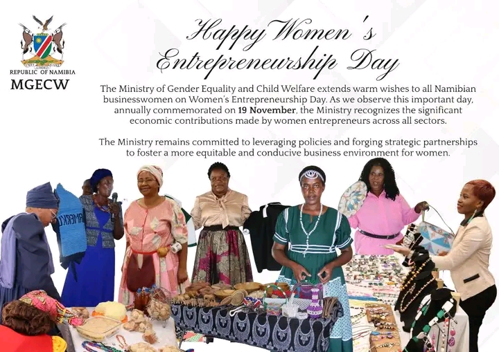 Namibia Marks Women’s Entrepreneurship Day With Message of Support for Businesswomen. Namibia’s Ministry of Gender Equality and Child Welfare has extended warm wishes to businesswomen across the country as the nation joins the global commemoration of Women’s Entrepreneurship Day, observed annually on 19 November. The day serves as an opportunity to spotlight the role of women in driving economic activity, job creation and community development.
