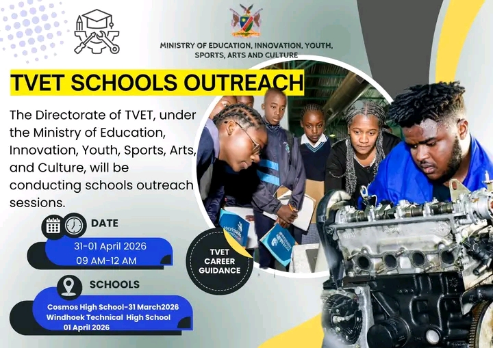 TVET Directorate Launches Career Outreach in Khomas Region. The Directorate of Technical and Vocational Education and Training (TVET) under the Ministry of Education, Innovation, Youth, Sports, Arts and Culture will conduct school outreach sessions in the Khomas Region from 31 March to 01 April 2026.